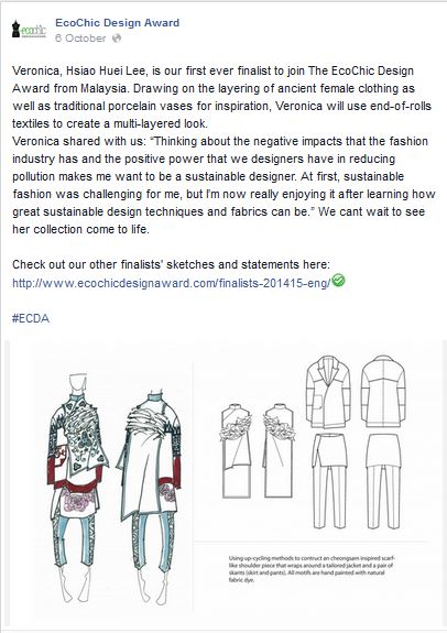 ecochic design award – malaysian finalist Posted on 11/19/2014 by chicstranger Share this: Click to share on X (Opens in new window) X Click to share on Facebook (Opens in new window) Facebook Click to share on Pinterest (Opens in new window) Pinterest Click to share on Tumblr (Opens in new window) Tumblr More Click to share on LinkedIn (Opens in new window) LinkedIn Click to share on Reddit (Opens in new window) Reddit Click to email a link to a friend (Opens in new window) Email Click to print (Opens in new window) Print Like Loading... Related Published by chicstranger View all posts by chicstranger